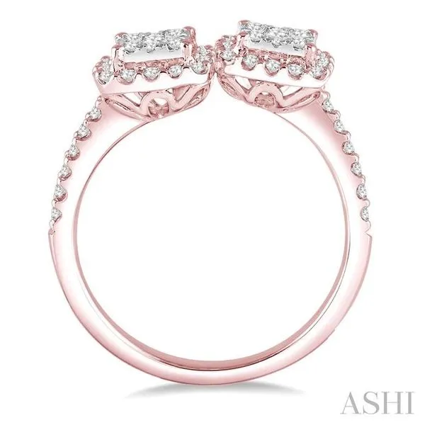 5/8 Ctw Conjoined Cushion Mount Round Cut Diamond Lovebright 2Stone Ring in 14K Rose and White Gold Image 2 Adler's Diamonds Saint Louis, MO