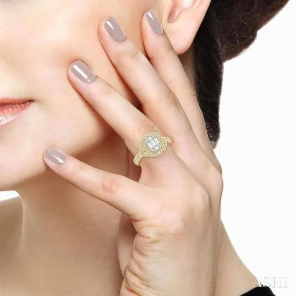 5/8 Ctw Intricate lattice Baguette and Round Cut Diamond Ring in 14K Yellow and white gold Adler's Diamonds Saint Louis, MO
