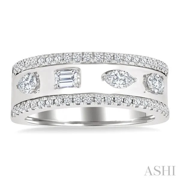 5/8 Ctw Mixed Shape Cut Diamond Fashion Wide Band in 14K White Gold Image 2 Adler's Diamonds Saint Louis, MO