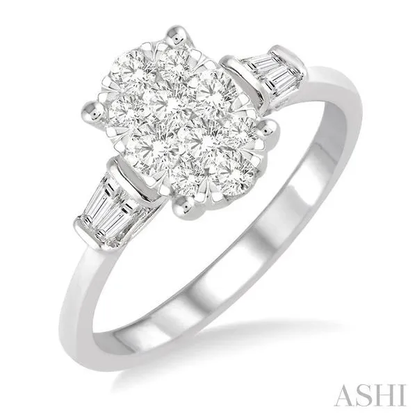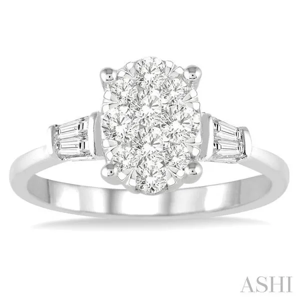 5/8 Ctw Oval Shape Lovebright Baguette and Round Cut Diamond Cluster Ring in 14K White Gold Image 2 Adler's Diamonds Saint Louis, MO