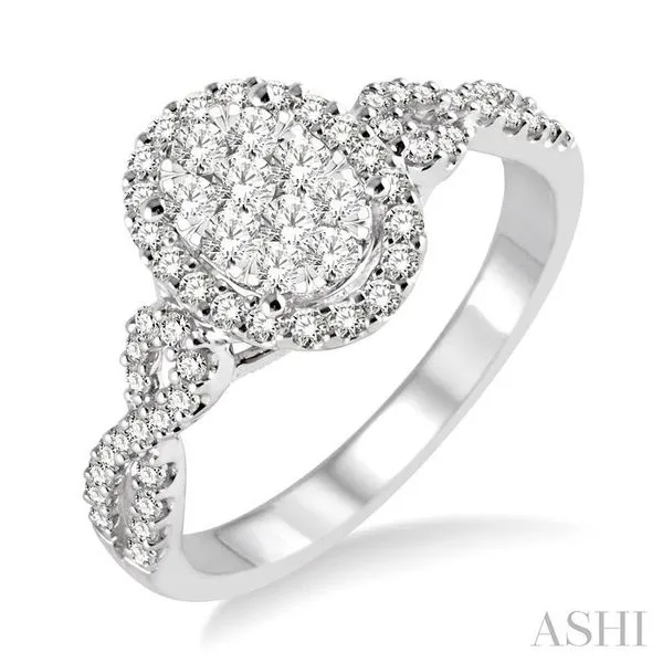 5/8 Ctw Oval Shape Round Cut Diamond Lovebright Ring in 14K White Gold Image 3 Adler's Diamonds Saint Louis, MO