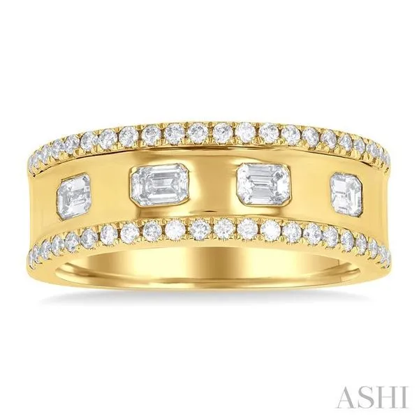 5/8 Ctw Wide 4-Stone Emerald & Round Cut Diamond Fashion Band in 14K Yellow Gold Image 3 Adler's Diamonds Saint Louis, MO
