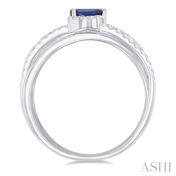 5x3 MM Emerald Shape Sapphire and 1/4 Ctw Single Cut Diamond Double Criss Cross Lovebright Precious Ring in 10K White Gold Image 3 Adler's Diamonds Saint Louis, MO