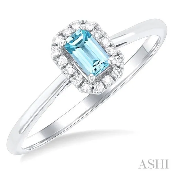 5x3 MM Octagonal Shape Aquamarine and 1/20 Ctw Single Cut Diamond Halo Semi-Precious Ring in 10K White Gold Image 2 Adler's Diamonds Saint Louis, MO