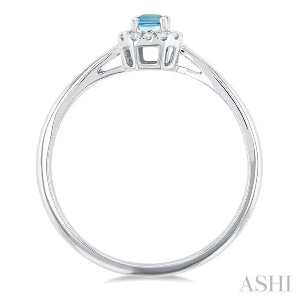 5x3 MM Octagonal Shape Aquamarine and 1/20 Ctw Single Cut Diamond Halo Semi-Precious Ring in 10K White Gold Image 3 Adler's Diamonds Saint Louis, MO