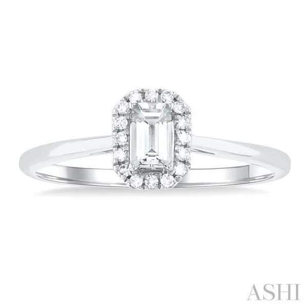 5x3 MM Octagonal Shape White Topaz and 1/20 Ctw Single Cut Diamond Halo Semi-Precious Ring in 10K White Gold Image 3 Adler's Diamonds Saint Louis, MO