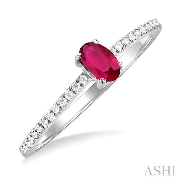5x3 MM Oval Cut Ruby and 1/10 Ctw Petite Round Cut Diamond Precious Fashion Ring in 10K White Gold Image 2 Adler's Diamonds Saint Louis, MO