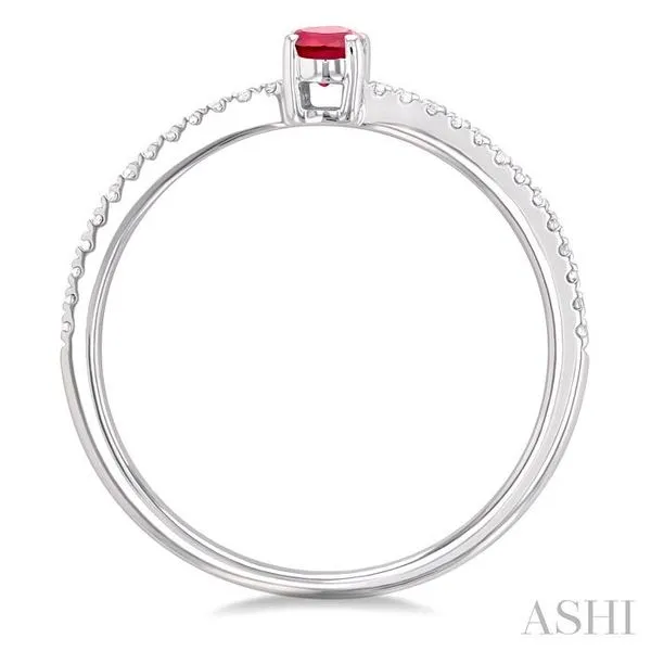 5x3 MM Oval Cut Ruby and 1/10 Ctw Petite Round Cut Diamond Precious Fashion Ring in 10K White Gold Image 3 Adler's Diamonds Saint Louis, MO