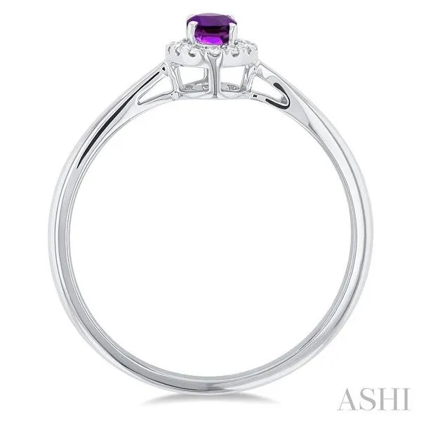 5x3 MM Oval Shape Amethyst and 1/20 Ctw Single Cut Diamond Halo Semi-Precious Ring in 14K White Gold Image 3 Adler's Diamonds Saint Louis, MO
