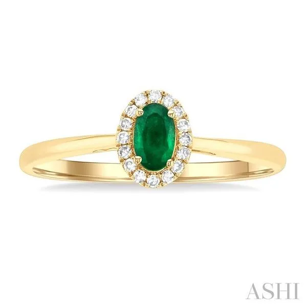 5x3 MM Oval Shape Emerald and 1/20 Ctw Single Cut Diamond Halo Precious Ring in 10K Yellow Gold Image 2 Adler's Diamonds Saint Louis, MO