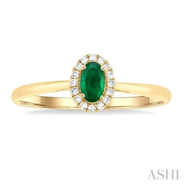 5x3 MM Oval Shape Emerald and 1/20 Ctw Single Cut Diamond Halo Precious Ring in 14K Yellow Gold Image 2 Adler's Diamonds Saint Louis, MO