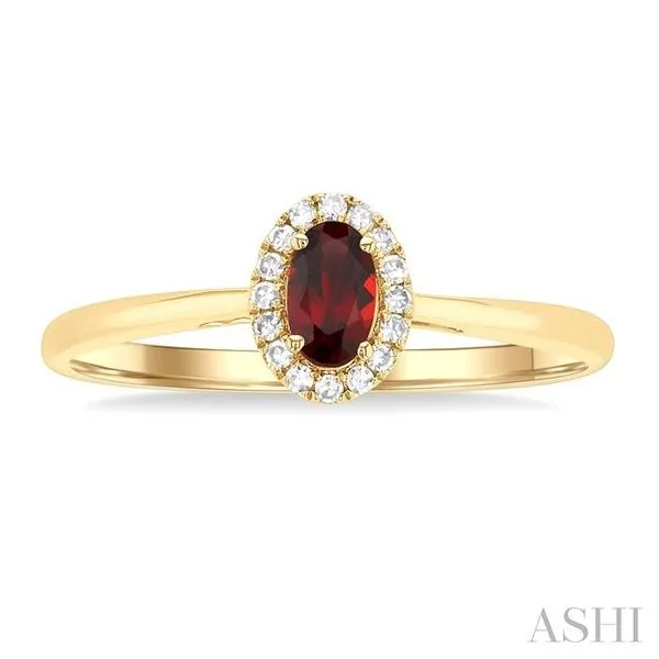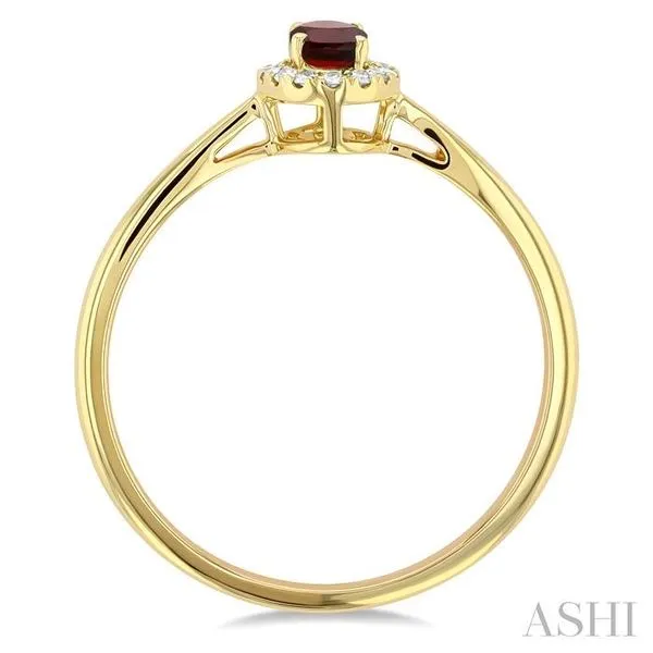 5x3 MM Oval Shape Garnet and 1/20 Ctw Single Cut Diamond Halo Semi-Precious Ring in 10K Yellow Gold Image 3 Adler's Diamonds Saint Louis, MO