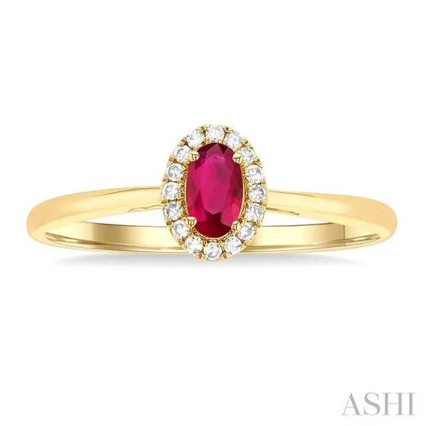 5x3 MM Oval Shape Ruby and 1/20 Ctw Single Cut Diamond Halo Precious Ring in 10K Yellow Gold Image 3 Adler's Diamonds Saint Louis, MO