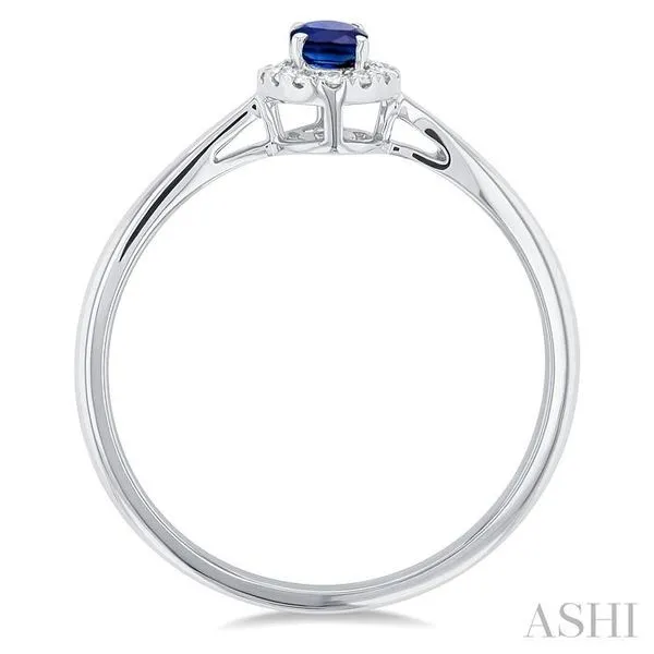 5x3 MM Oval Shape Sapphire and 1/20 Ctw Single Cut Diamond Halo Precious Ring in 14K White Gold Image 3 Adler's Diamonds Saint Louis, MO