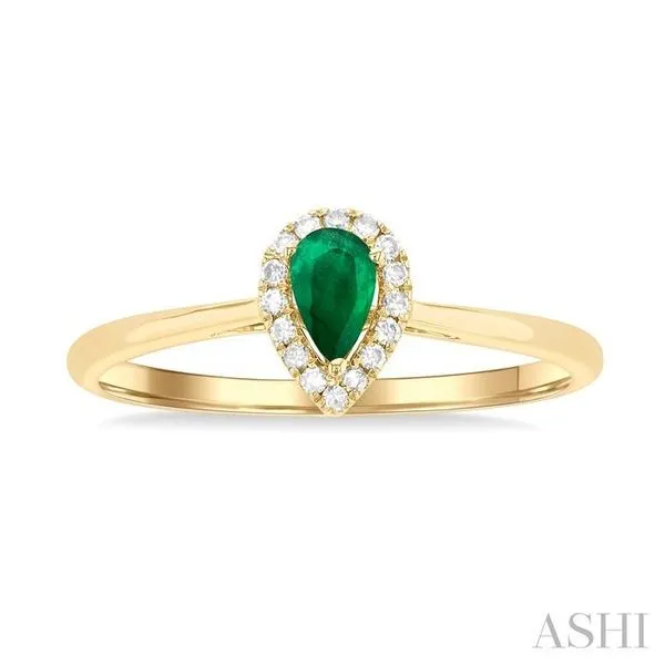 5x3 MM Pear Shape Emerald and 1/20 Ctw Single Cut Diamond Halo Precious Ring in 10K Yellow Gold Image 2 Adler's Diamonds Saint Louis, MO