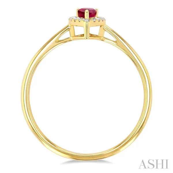 5x3 MM Pear Shape Ruby and 1/20 Ctw Single Cut Diamond Halo Precious Ring in 10K Yellow Gold Image 4 Adler's Diamonds Saint Louis, MO