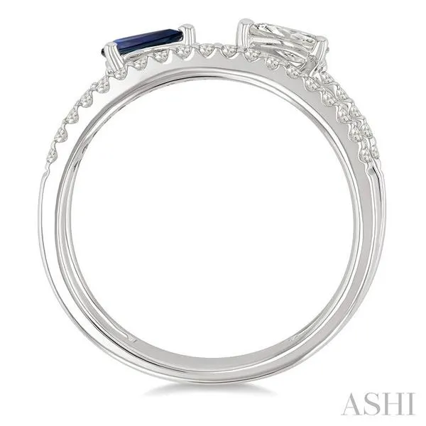 5X3 MM Sapphire, Pear and 1/2 Ctw Split Shank Round Cut Diamond Precious Fashion Ring in 14K White Gold Image 2 Adler's Diamonds Saint Louis, MO