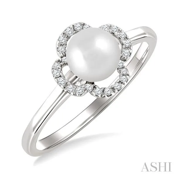 6 MM Cultured Pearl and 1/10 Ctw Round Cut Diamond Clover Petite Fashion Ring in 10K White Gold Adler's Diamonds Saint Louis, MO