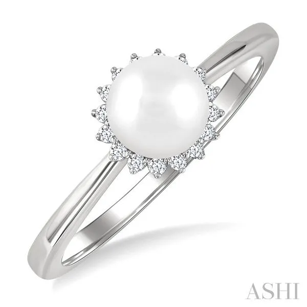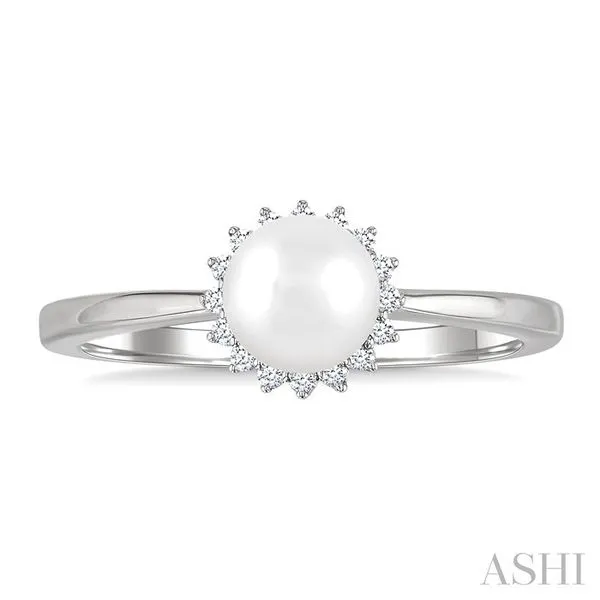 6 MM Round Shape Cultured Pearl and 1/10 Ctw Petite Round Cut Diamond Floral Halo Fashion Ring in 10K White Gold Image 2 Adler's Diamonds Saint Louis, MO