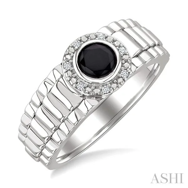 6 MM Round Shape Onyx and 1/20 Ctw Round Cut Diamond Semi-precious Men's Ring in Sterling Silver Image 2 Adler's Diamonds Saint Louis, MO