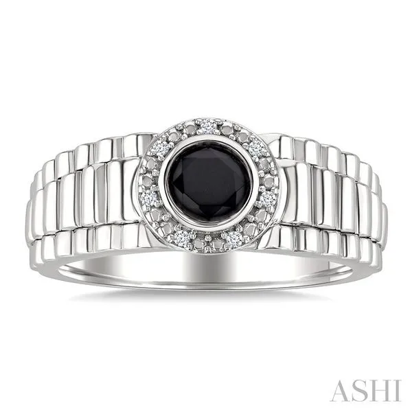 6 MM Round Shape Onyx and 1/20 Ctw Round Cut Diamond Semi-precious Men's Ring in Sterling Silver Adler's Diamonds Saint Louis, MO