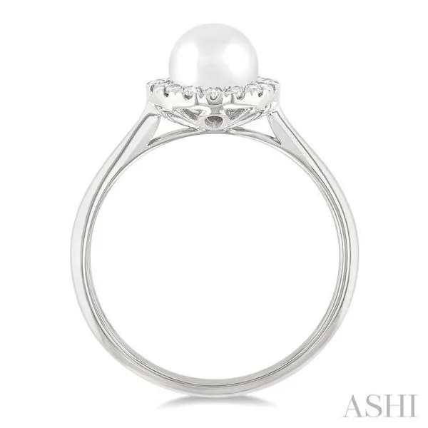 6 MM White Cultured Pearl and 1/6 Ctw Round Cut Diamond Halo Ring in 14K White Gold Image 3 Adler's Diamonds Saint Louis, MO
