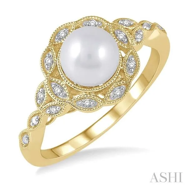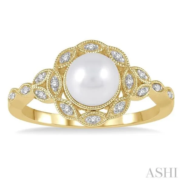 6.5 MM Cultured Pearl and 1/20 Ctw Round Cut Diamond Ring in Yellow Gold Vermeil Adler's Diamonds Saint Louis, MO