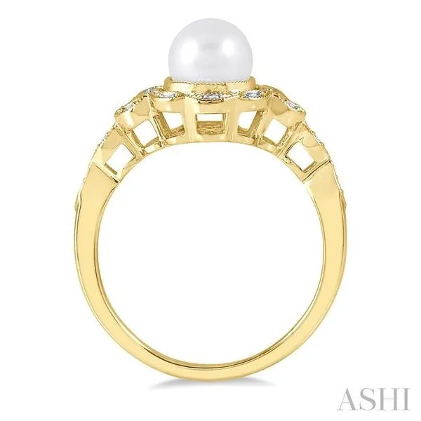 6.5 MM Cultured Pearl and 1/20 Ctw Round Cut Diamond Ring in Yellow Gold Vermeil Image 3 Adler's Diamonds Saint Louis, MO