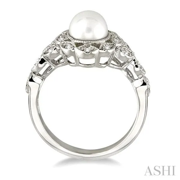 6.5 MM Cultured Pearl and 1/8 Ctw Single Cut Diamond Ring in 14K White Gold Image 2 Adler's Diamonds Saint Louis, MO
