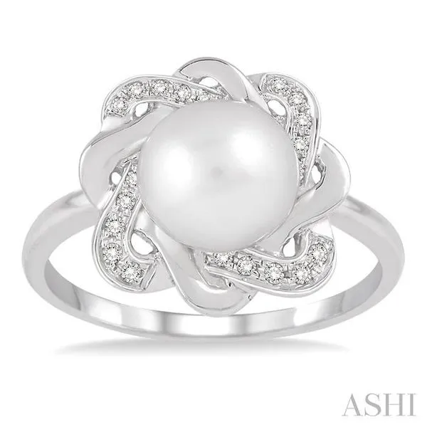 6.5 MM Round Shape Cultured Pearl and 1/10 Ctw Round Cut Diamond Ring in Sterling Silver Image 4 Adler's Diamonds Saint Louis, MO