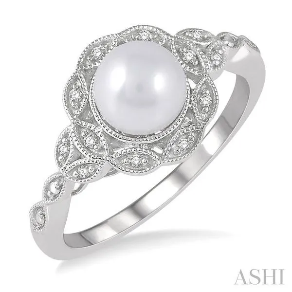 6.5x6.5 MM Cultured Pearl and 1/20 Ctw Single Cut Diamond Ring in Sterling Silver Image 4 Adler's Diamonds Saint Louis, MO