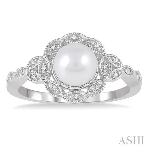 6.5x6.5 MM Cultured Pearl and 1/20 Ctw Single Cut Diamond Ring in Sterling Silver Adler's Diamonds Saint Louis, MO