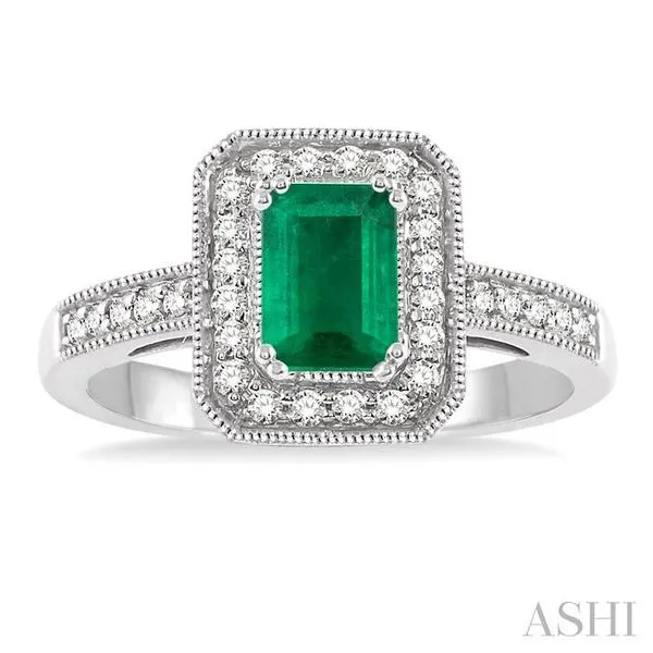 6x4 MM Emerald Shape Emerald and 1/4 Ctw Round Cut Diamond Ring in 14K White Gold Image 2 Adler's Diamonds Saint Louis, MO