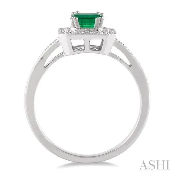 6x4 MM Emerald Shape Emerald and 1/4 Ctw Round Cut Diamond Ring in 14K White Gold Image 4 Adler's Diamonds Saint Louis, MO