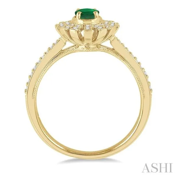 6x4 MM Floral Oval Shape Emerald and 1/5 Ctw Round Cut Diamond Precious Ring in 10K Yellow Gold Image 3 Adler's Diamonds Saint Louis, MO