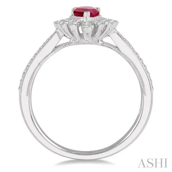6x4 MM Lattice Pear Shape Ruby and 1/5 Ctw Round Cut Diamond Precious Ring in 10K White Gold Image 3 Adler's Diamonds Saint Louis, MO