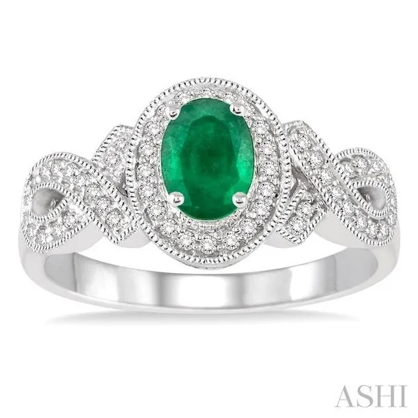 6x4 MM Oval Cut Emerald and 1/4 Ctw Round Cut Diamond Ring in 10K White Gold Adler's Diamonds Saint Louis, MO