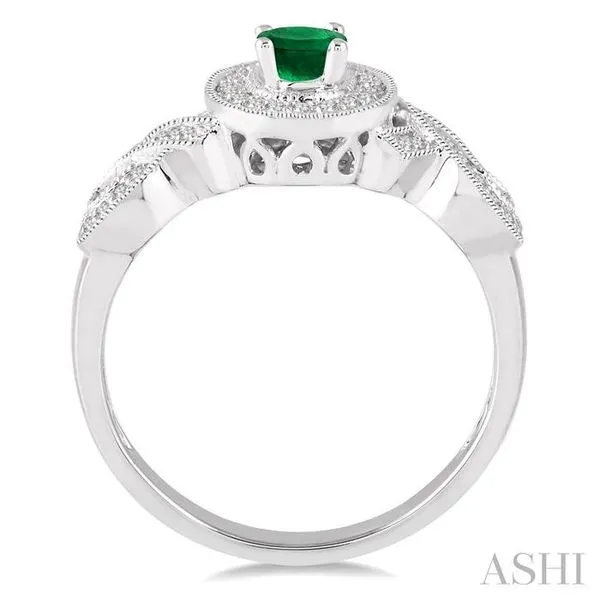 3. 6x4 MM Oval Cut Emerald and 1/4 Ctw Round Cut Diamond Ring in 10K White Gold