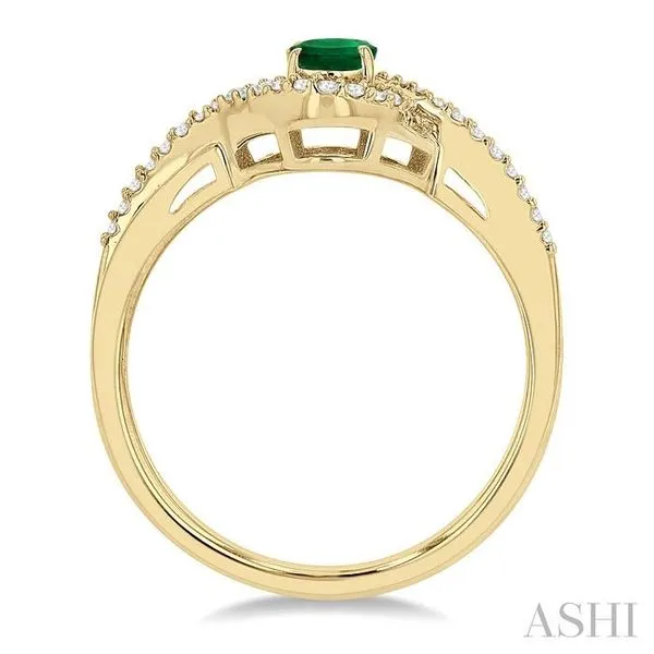 (314) 394-20866x4 MM Oval Cut Emerald and 1/6 Ctw Split Criss Cross Bypass Shank Round Cut Diamond Precious Ring with Center Stone in 10K Yellow Gold