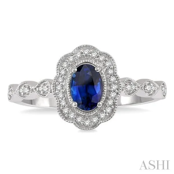 6x4 MM Oval Shape Sapphire and 1/6 Ctw Round Cut Diamond Precious Ring in 10K White Gold Image 2 Adler's Diamonds Saint Louis, MO