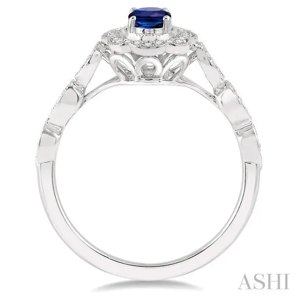 6x4 MM Oval Shape Sapphire and 1/6 Ctw Round Cut Diamond Precious Ring in 10K White Gold Image 3 Adler's Diamonds Saint Louis, MO