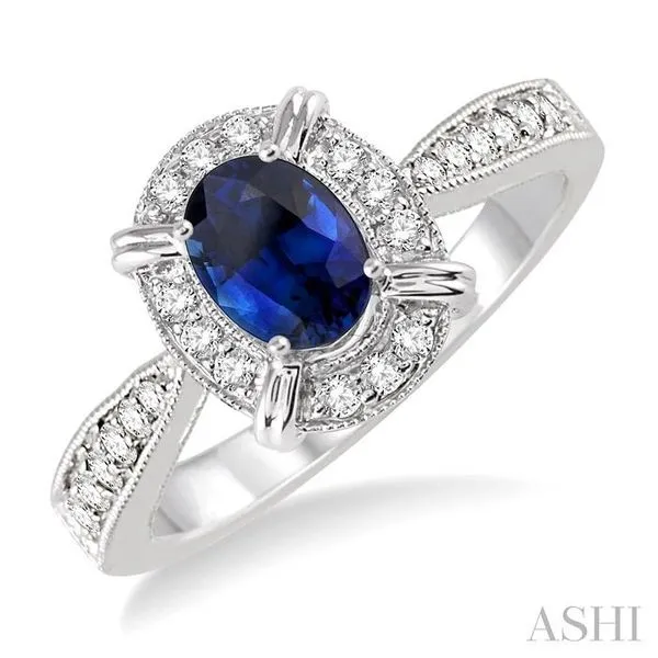 6x4 MM Oval Shape Sapphire and 1/6 Ctw Single Cut Diamond Ring in 10K White Gold Adler's Diamonds Saint Louis, MO