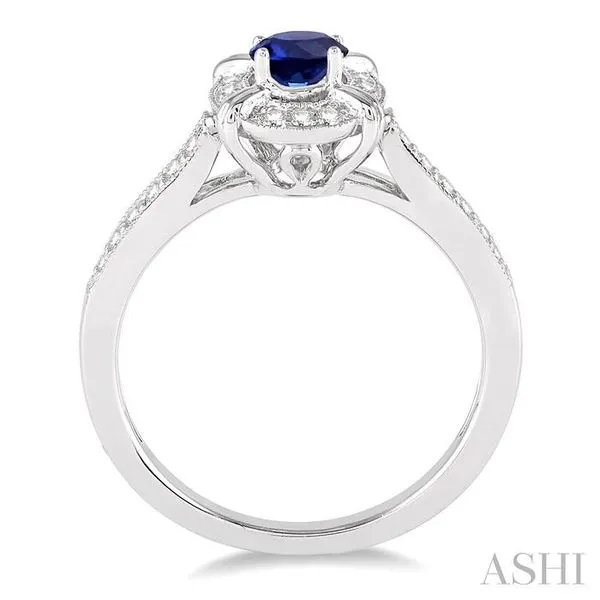 6x4 MM Oval Shape Sapphire and 1/6 Ctw Single Cut Diamond Ring in 10K White Gold Image 3 Adler's Diamonds Saint Louis, MO