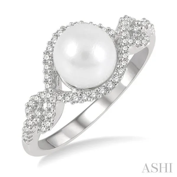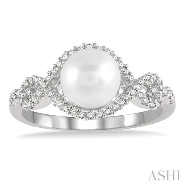 7 MM Round Shape Cultured Pearl and 1/5 Ctw Round Cut Diamond Twisted Open Lattice Ring in 10K White Gold Image 2 Adler's Diamonds Saint Louis, MO