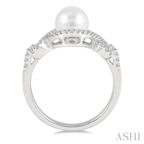 7 MM Round Shape Cultured Pearl and 1/5 Ctw Round Cut Diamond Twisted Open Lattice Ring in 10K White Gold Image 3 Adler's Diamonds Saint Louis, MO