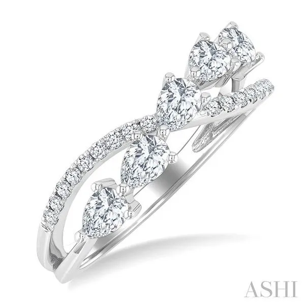 7/8 Ctw Split Criss Cross Pear and Round Cut Diamond Fashion Ring in 14K White Gold Adler's Diamonds Saint Louis, MO