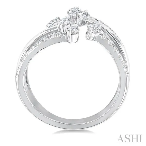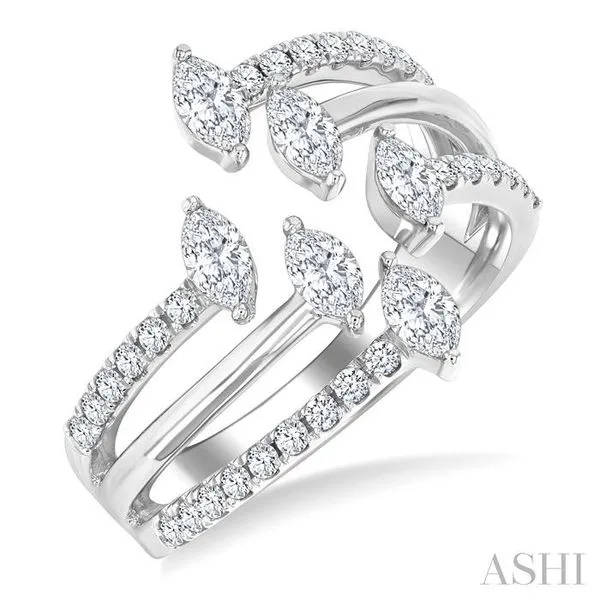 7/8 Ctw Three-Way Split Marquise and Round Cut Diamond Fashion Open Ring in 14K White Gold