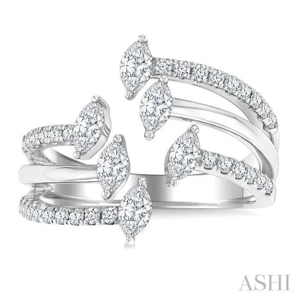 7/8 Ctw Three-Way Split Marquise and Round Cut Diamond Fashion Open Ring in 14K White Gold Image 2 Adler's Diamonds Saint Louis, MO