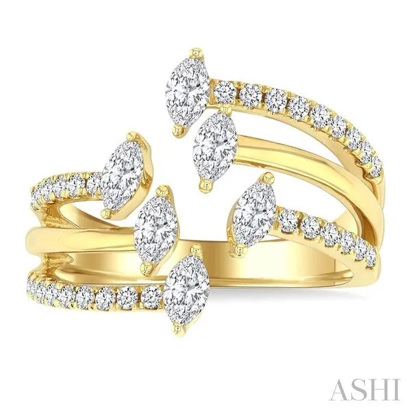 7/8 Ctw Three-Way Split Marquise and Round Cut Diamond Fashion Open Ring in 14K Yellow Gold Image 2 Adler's Diamonds Saint Louis, MO