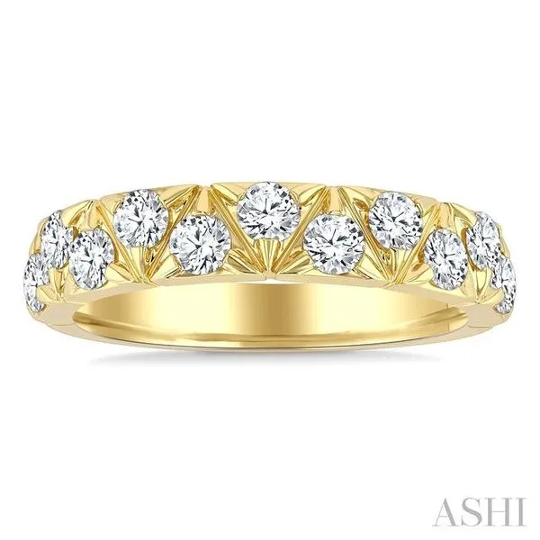7/8 Ctw Triangle Pattern Round Cut Diamond Half Eternity Fashion Band in 14K Yellow Gold Image 3 Adler's Diamonds Saint Louis, MO